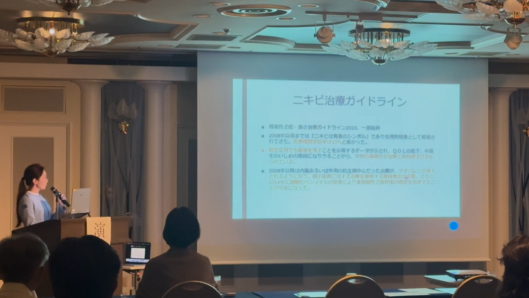 日本皮膚科学会認定 皮膚科専門医の葉山医師が「ベピオウォッシュゲル5%発売記念講演会」に登壇いたしました。