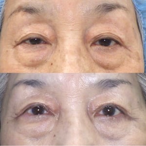 治療法:二重埋没、眼瞼下垂手術、場合によっては眉下切開