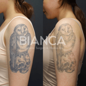 ピコスポットによるタトゥー除去の最大の特長は、インク粒子をより微細に砕ける点にあります。これにより、体内のマクロファージ(異物を処理する免疫細胞)が効率的に色素を排出でき、回数を重ねるごとにタトゥーの色調が徐々に薄くなっていきます。黒色や濃紺など、カーボン系の色素は特に反応が良く、比較的少ない回数で除去が進む傾向にあります。