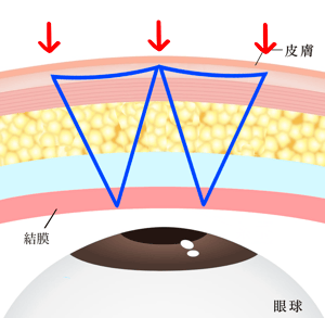 → 2方向から力がかかり、瞼板が歪むリスクがあります。