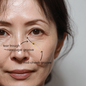tear trough の凹みがさらに目立ち始めることが多く、脂肪の突出も強くなってくるため、内部構造の治療が必要になるケースが急増。