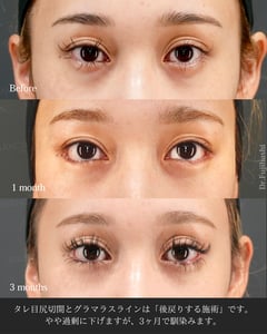 タレ目尻切開は後戻りが少ないと言われる施術ですが、経験上1〜2割程度は戻ります。