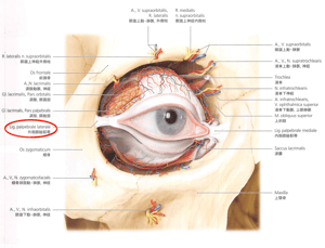 これは、眼窩外側壁(頬骨)の内側に付着しており、