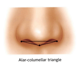 これは小鼻(鼻翼)と鼻柱でつくられる三角形で、下向きの三角形が理想とされています。