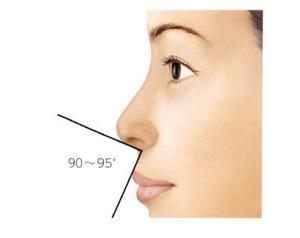 また、鼻の印象を左右する要素として鼻唇角(鼻柱と上唇の角度)も重要です。