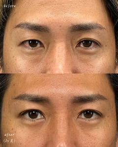 今回ご紹介するのは、 両側の目の下脱脂と、 右目のみ埋没法(自然癒着法)を組み合わせることで、