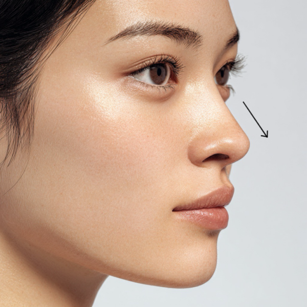 しかし何らかの理由でここにボリュームが残ると、鼻先よりも上が目立ち、結果として「鼻先が下がった」「重たい」印象になります。