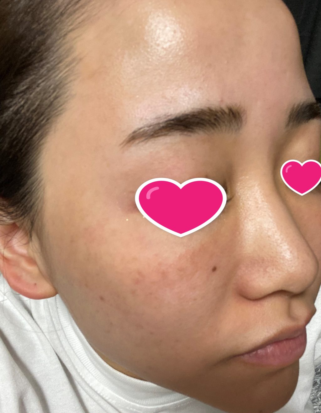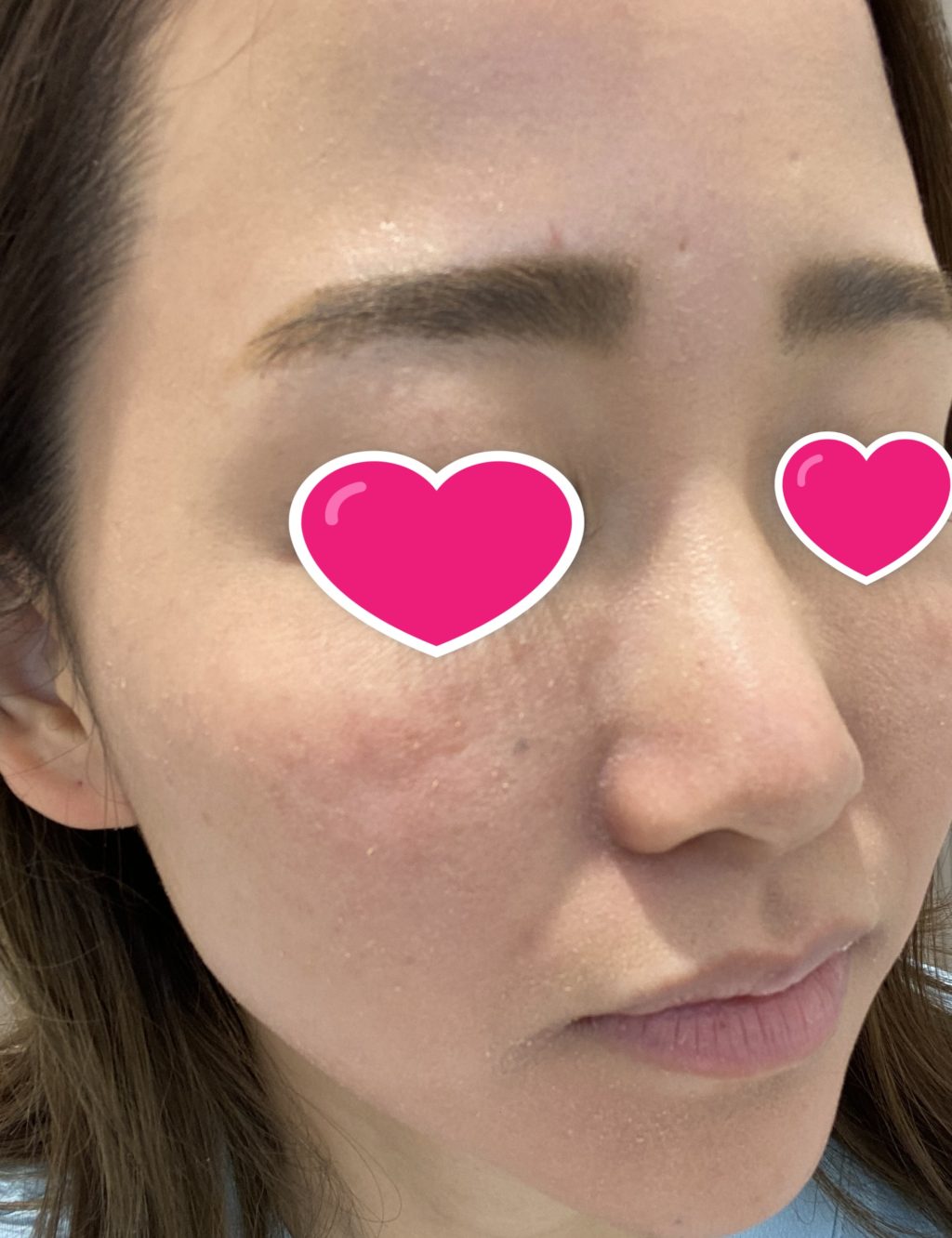 眉間と頬に少しだけ赤み、小鼻と顎が少し皮むけ 程度でした😊