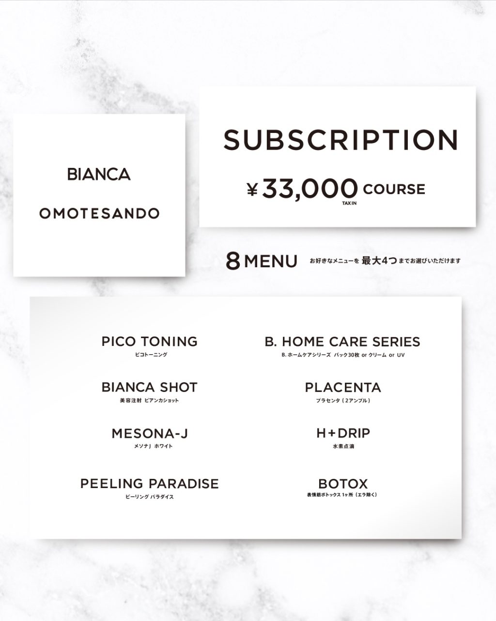 プラスしてBIANCA SHOTやホームケアシリーズ、 3ヶ月に1回のBOTOXなど選ぶこともできるので、嬉しいですよね✨
