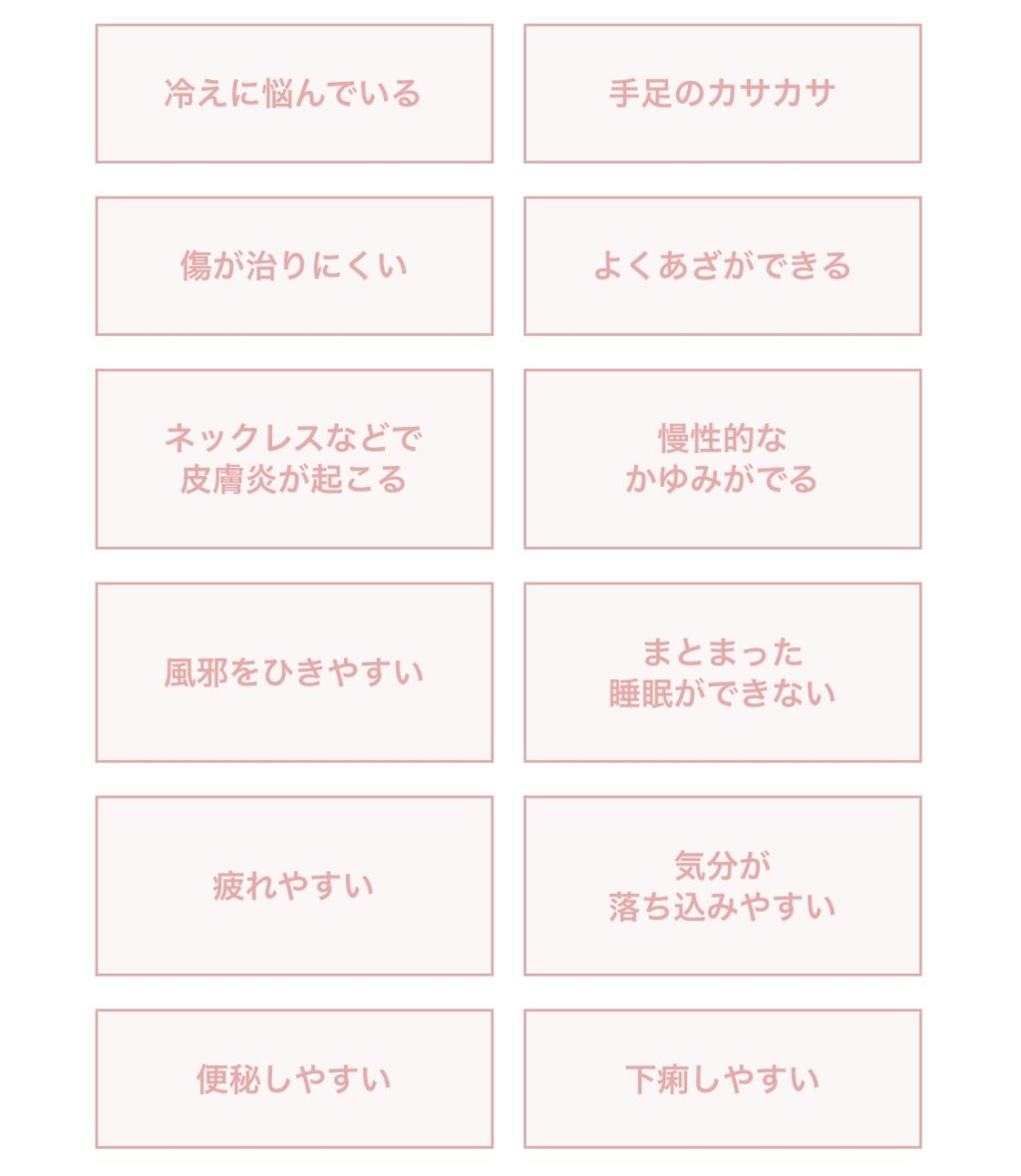 私自身も以前は朝起きられない・疲れやすい・手や足先が冷える・電車移動で長く立っているとくらくらする・肌荒れする・便秘などなど挙げたらキリのない小さな健康上の悩みを抱えていました。
