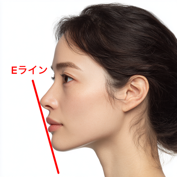 横顔の基準として有名なのがEライン(鼻先と顎先を結ぶ線)です。