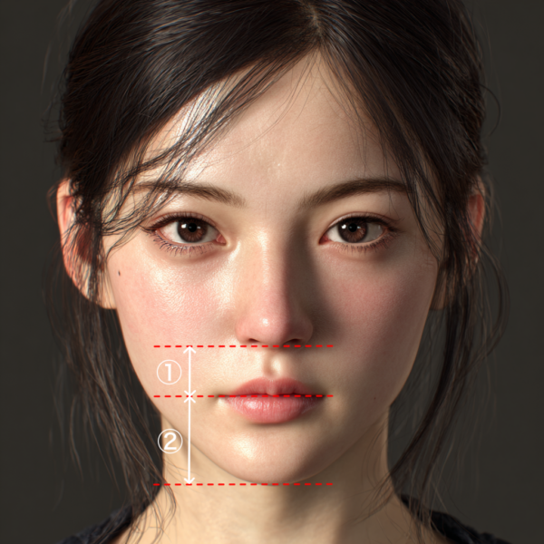 「鼻下〜上口唇」 : 「下口唇〜顎先」 ≒ 1:2