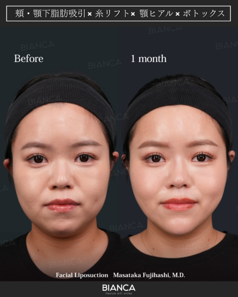 皮下脂肪は顔の広い範囲に分布しているため、フェイスライン、頬、あご下などをバランスよく整えることが可能です。