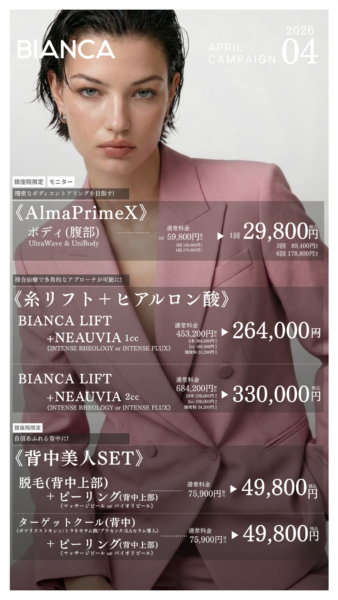 4月も糸リフトとニュービアのキャンペーンやっています!!