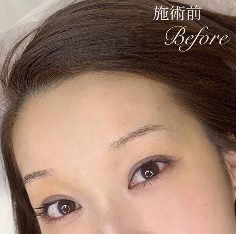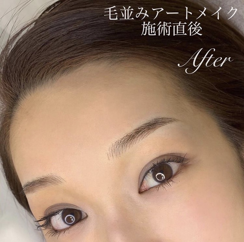【眉アートメイクビフォー&アフター、すっぴんでも浮かないデザイン】