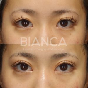 幅広平行二重をご希望されており、合わせて目の左右の長さも延長しました。