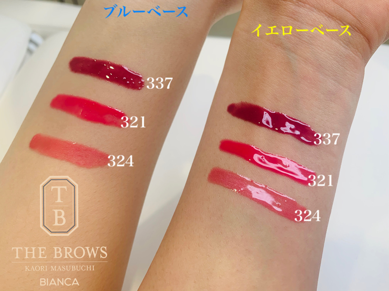 Merry Christmas🎄🎁 アートメイクカウンセラーの永田です😊 クリスマスは皆さまいかがお過ごしですか? クリスマスなので増淵さんを 今回はブルーベースの方にオススメのリップカラーを ご案内させて頂きます🙏🏻💕 リップカラーにはピンク系レッド系オレンジ系ブラウン系などなど、、沢山ありますよね😱💦 更にそこから細かく色々分かれているので 何が自分に似合うか判断するのは難しいですよね😓 まずブルーベースの方には ローズやピンクなどの青味ニュアンスカラーがピッタリです✨ 青味ニュアンスカラーを使用すると、 ブルーベースの方特有の透明感のあるお肌を より引き立てる事が出来ます😍👏🏻👏🏻 逆にクリアなオレンジなどの 黄色味ニュアンスの強いカラーを使用してしまうと 疲れて見えてしまうのでご注意ください💦💦 カラーの系統としては ローズ系、ボルドー系、ワイン系、バーガンディ系のカラーがオススメです☺️💕 当院で取り扱っているラシャスリップですと ❤️321 Are You Red-dy? 💓324 Yummy Plummy 💜337 Merlot Madness こちらが特にオススメです💁🏻‍♀️💕 337は限定カラーとなっておりまして 秋冬にはピッタリのカラーなのでリップに付けるだけで 一気に季節感が出ると思います😍💓 実際にお肌に乗せて見るとこんな感じです💁🏻‍♀️💕 少し写真を通してだと分かりにくいですが😭💔 イエローベースにのせるとくすんで見えますよね💦 特に337が写真だと分かりやすいかと思います! あとは、その方のお肌のトーンによっても異なりますので よろしければ店頭でお試ししてみてください😍 系統がわかるだけでも、 お買い物の際に選びやすくなると思いますので 参考にしていただけると嬉しいです🙈💕 また次回イエローベースの方にオススメのカラーを ご案内させて頂きますのでよろしくお願いします❣️ いつもありがとうございます❤️