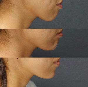 施術前→アゴヒアルロン酸直後→あごボトックス1週間後 の経過になります。