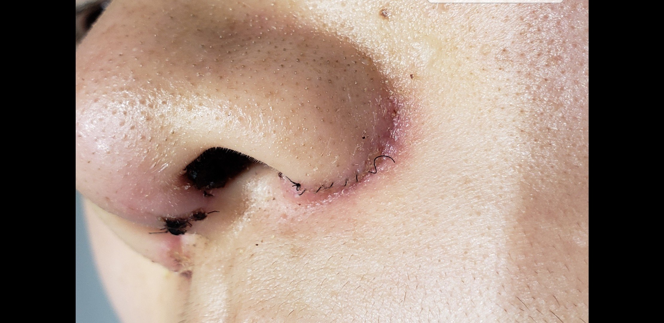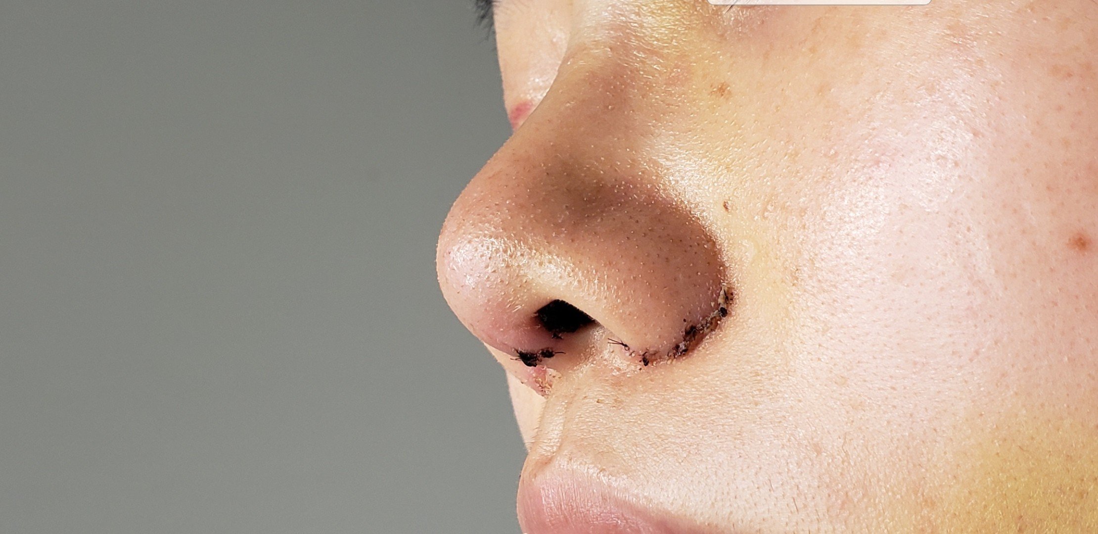 抜糸までは鼻を洗えないので、角栓と皮脂が目立ちますが、