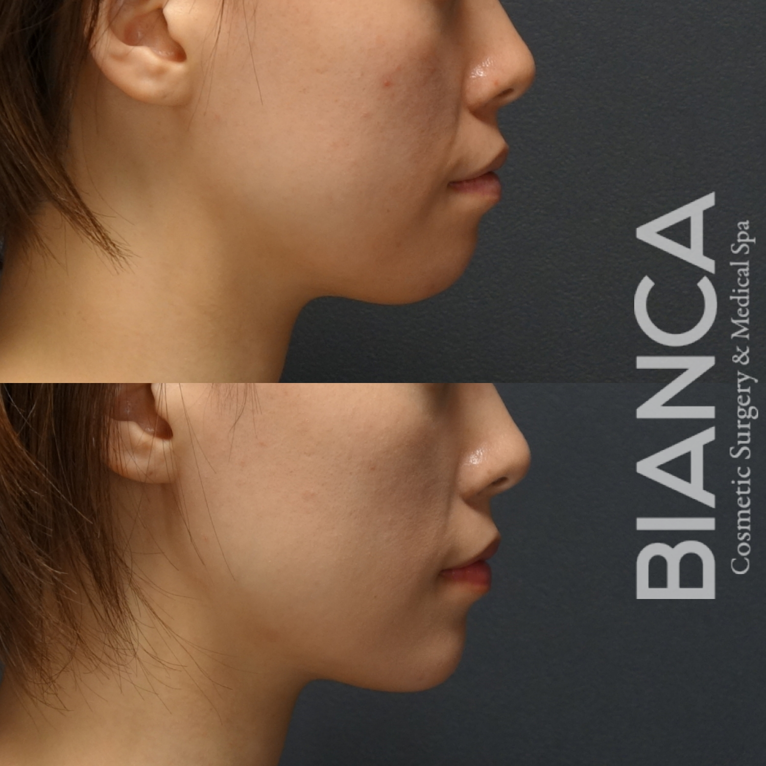 顎の先端を細くすると、シャープな小顔の印象になり、綺麗なEラインになります。
