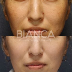 今回のモニター様は、治療開始時は夏で肌が黒く日焼けしていました。