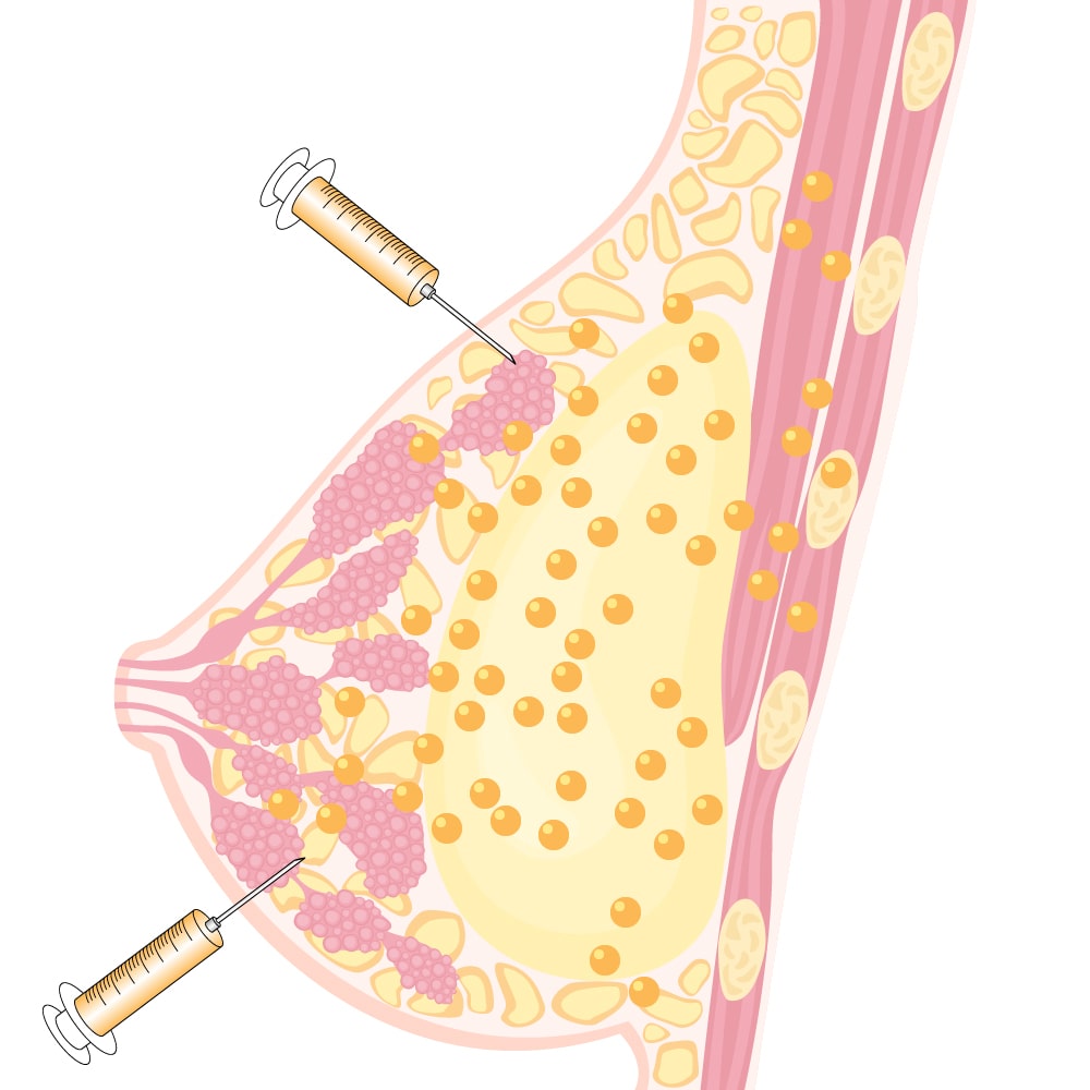 ご⾃⾝の⾝体から採取した脂肪から不純物を除去した上で、お胸に注⼊する⼿術です。コンデンスリッチファット(CRF)は従来の⽅法にくらべ、注⼊する脂肪の質と安全⾯が優れているのが特徴です。CRFは脂肪細胞の密度が⾼くかつ脂肪幹細胞を多く含んでいるので、より⾼い定着率を実現し、吸引した脂肪を最⼤限に活かせるようになりました。