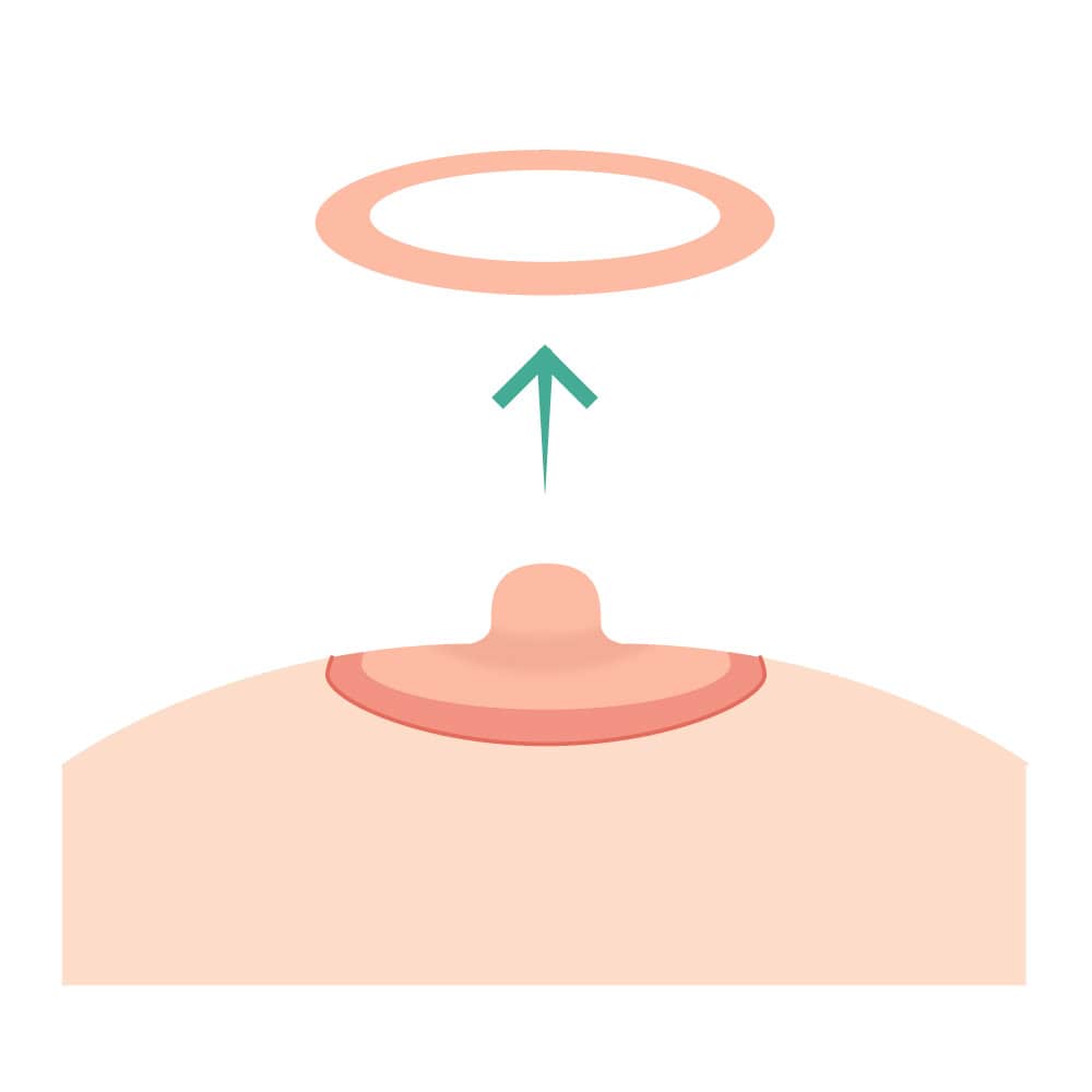乳輪縮小術では、乳房のバランスにあった乳輪のサイズに小さくすることが可能です。乳輪をドーナツ状に切除し縫い寄せる方法で、乳腺を傷つけることもなく、授乳への心配もありません。