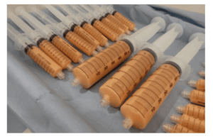 アメリカFDA(日本の厚生労働省に該当)の認可を受けたLIPOKIT並びにその付属部材で、採取した脂肪を外気に触れさせないまま遠心分離にかけ、脂肪壊死やしこり、石灰化の原因となる死活・老化細胞や細胞破片などの不純物を除去。