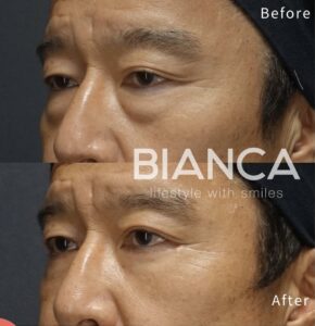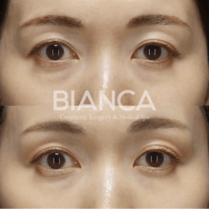 クマがある場合はその切開部からアプローチしてクマ治療も同時に行います(表ハムラといいます)。
