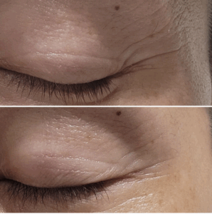 (リジュランアイ 上:注入前、下:1回注入3週間後)