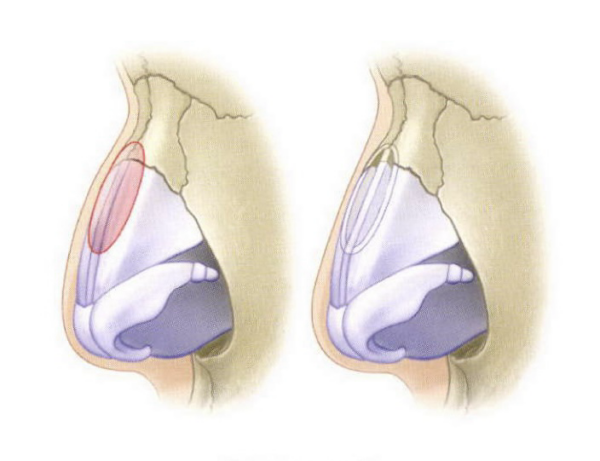 ハンプが大きい場合、切除後に鼻筋中央に構造的な欠損が生じることがあります。