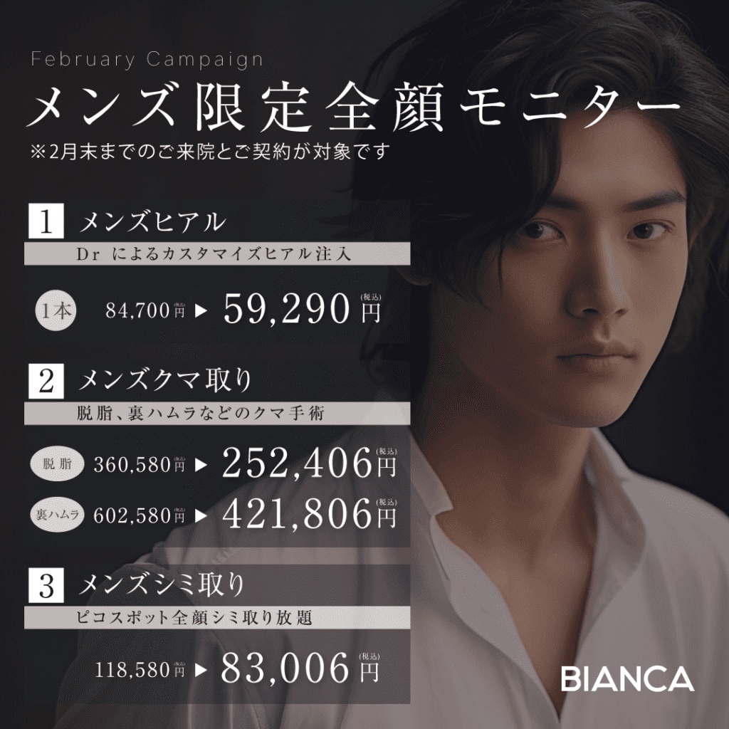 Recently, men are becoming more and more conscious of beauty, and at BIANCA, we have many male patients every day.