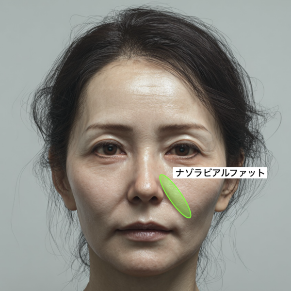 Nasolabial fat is vertical subcutaneous fat that is present from the sides of the nose to above the laugh lines.