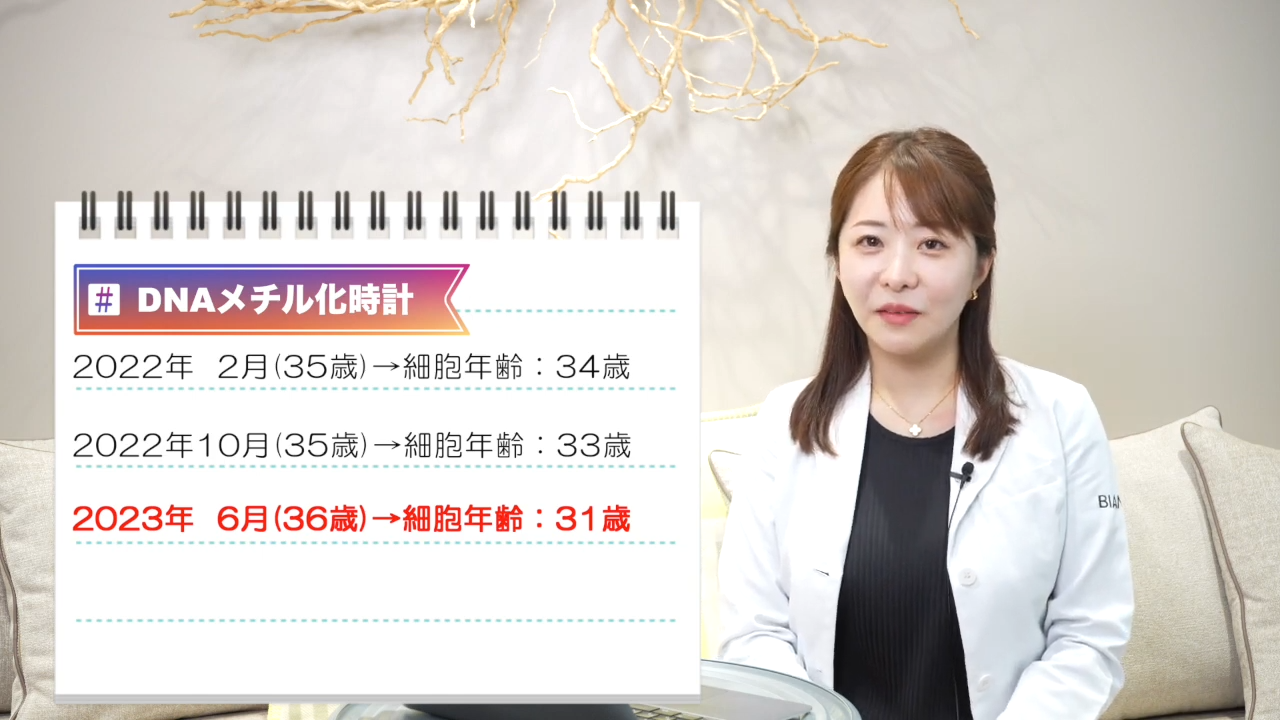 ちなみに、私は昭和62年生まれの現在36歳なのですが、体内年齢は31歳です。私はおととしからDNAメチル化時計検査測定をし始め、これまでに計3回測定しました。それぞれの結果は以下の通りです。
