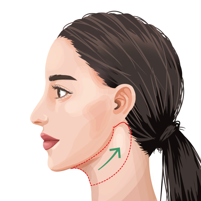 A neck lift makes an incision in the skin from behind the ear to the hairline on the nape of the neck to lift up the sagging around the neck and under the chin, as well as eliminate deep vertical wrinkles.