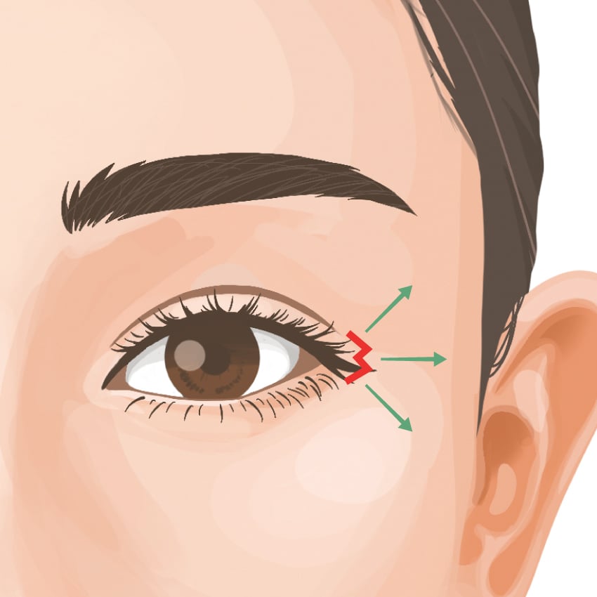 If the conjunctiva (pink part) is exposed immediately when the outer corner of the eye is pulled outward with a finger, it cannot be expected to expand the outer corner of the eye too much.