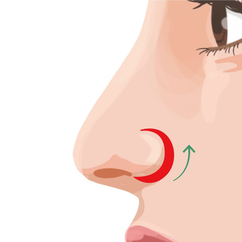 It is a surgery to raise the wings of the nose by making an incision in the groove above the wings of the nose, removing the excess skin, and suturing the lifted position.The incision should be made along the nostril so that the scar is as inconspicuous as possible.