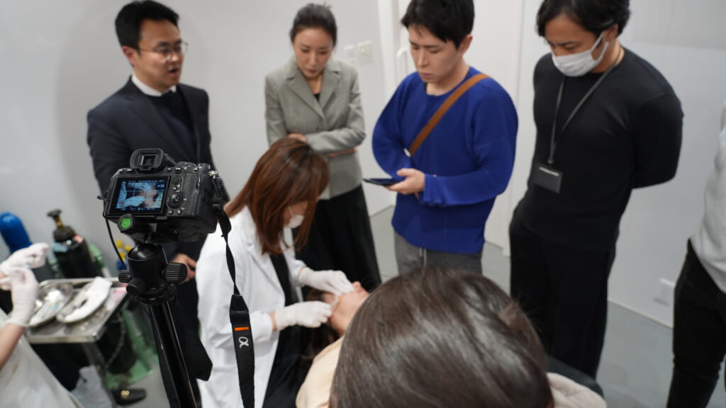 当日は30名以上の医師が他院より参加し、実際の施術を交えながら、製剤の特性や注入方法について実践的な指導が行われました。
