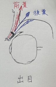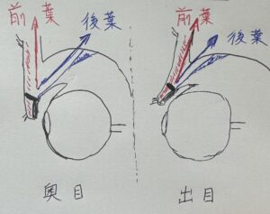 瞼は前葉(赤文字)と後葉(青文字)に分けられます。