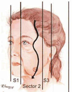 で解説したようにSector2の脂肪増加と全体の下垂がたるみに大きく関係しています。