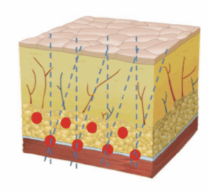 皮膚の土台となるSMAS層という肌の深い層に集中的に熱エネルギーを照射して、肌の奥深くからたるみを引き上げます。