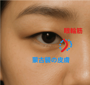 蒙古襞を作る皮膚だけでなく、その下に蒙古襞に沿った眼輪筋も発達しています。