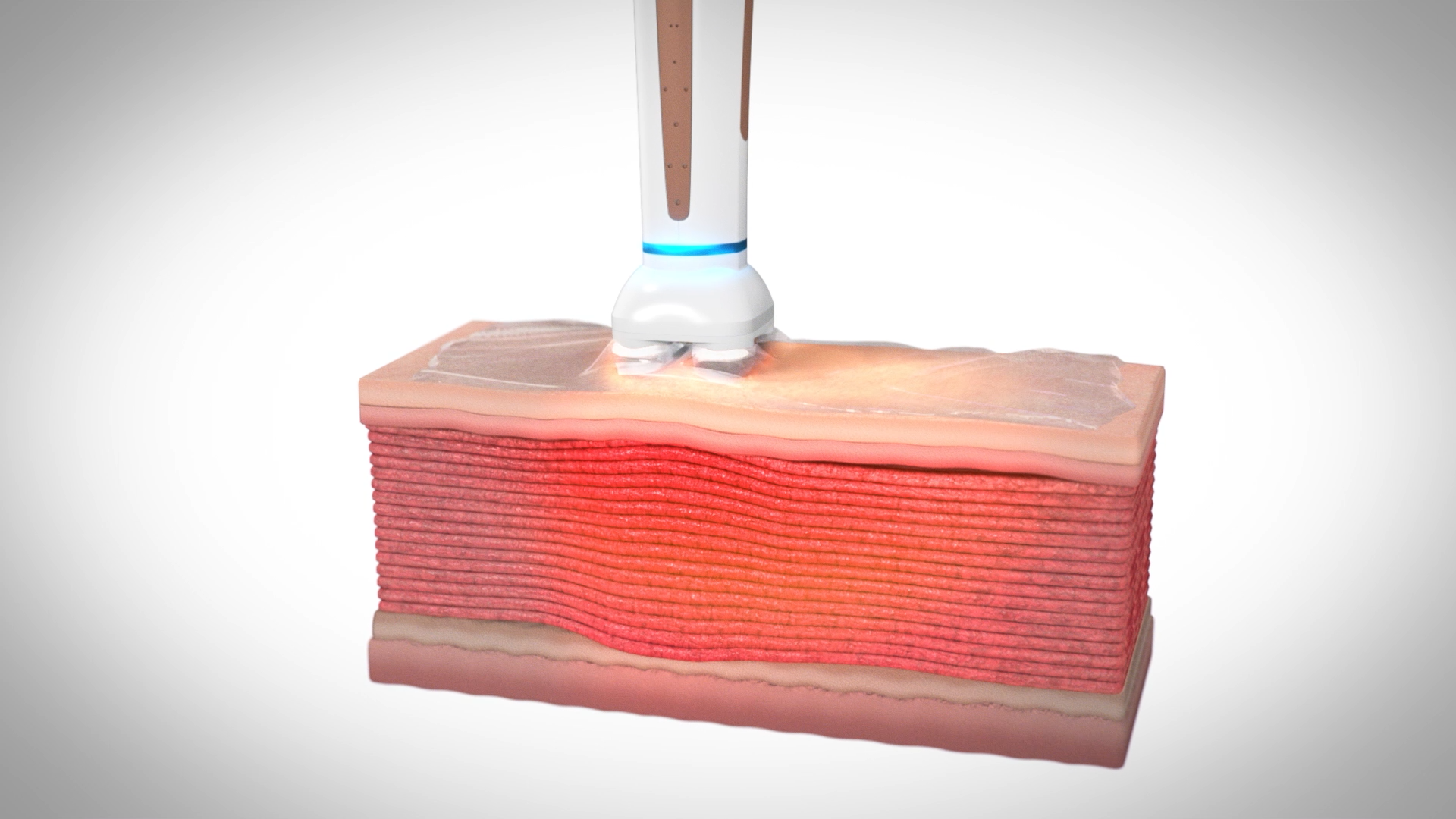 スマスアップネオのbQUAD®ハンドピースは、EMSや電磁パルスと似た筋活動電位に合わせて高周波を放射し、熱効果と電気刺激の2つの効果を同時に生成できます。これは特許を取得した独自のバイポーラ配置によるもので、皮膚の深部に均一に熱を供給することが可能です。この方法により、線維芽細胞の活性化が促進され、コラーゲン生成が増加し、皮膚のハリと弾力が向上します。