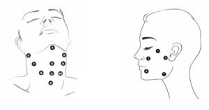 プロファイロの注入は、IBSA社推奨のBAP注入法が基本です。顔の下3分の1に片側5カ所ずつ、合計10カ所に注入することで、ヒアルロン酸が2cm四方に拡散し、最小限の注射で顔全体に均一な効果をもたらします。大きな血管や神経を避けるため、安全性も高く、肌のリモデリングを中心にナチュラルな若返りを実現します。