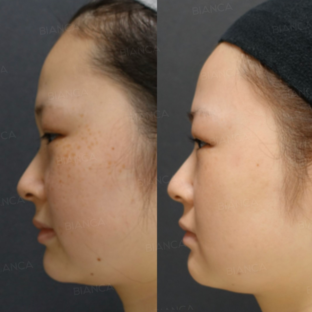 Eliminación ilimitada de todas las partes de la cara mediante una incisión bajo la ceja y un pico-spot.