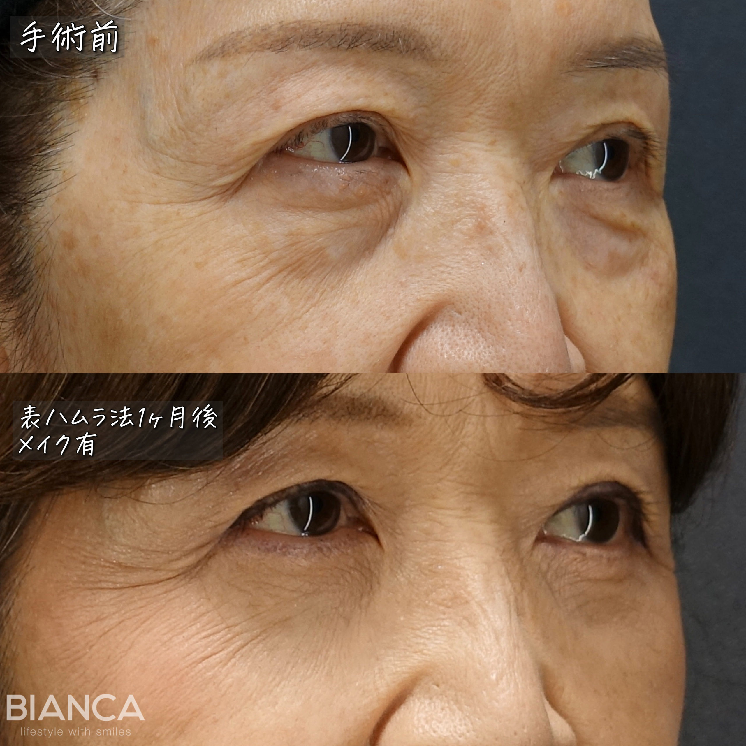 劇的かつ自然に変わる、クマ治療 裏ハムラ(Hamura)法