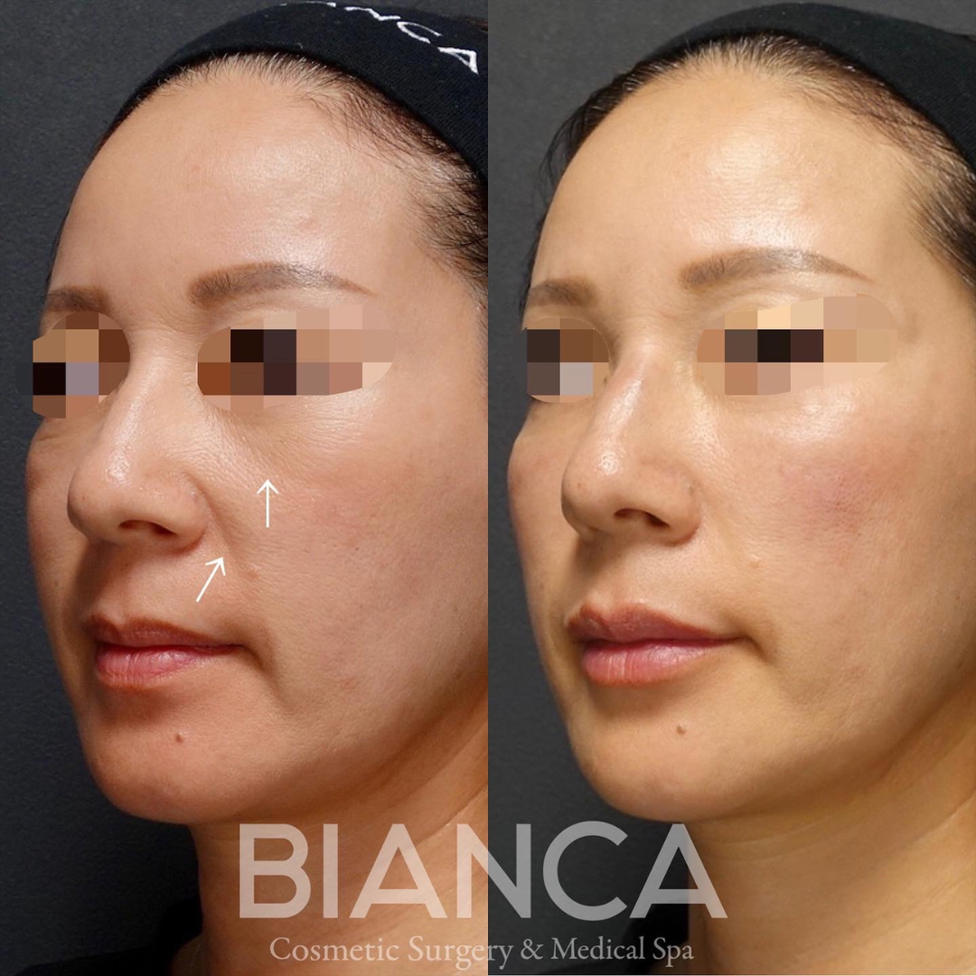 中顔面に立体を ヒアルロン酸(ゴルゴライン、鼻翼基部〜ほうれい線)