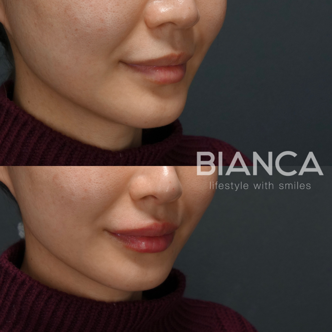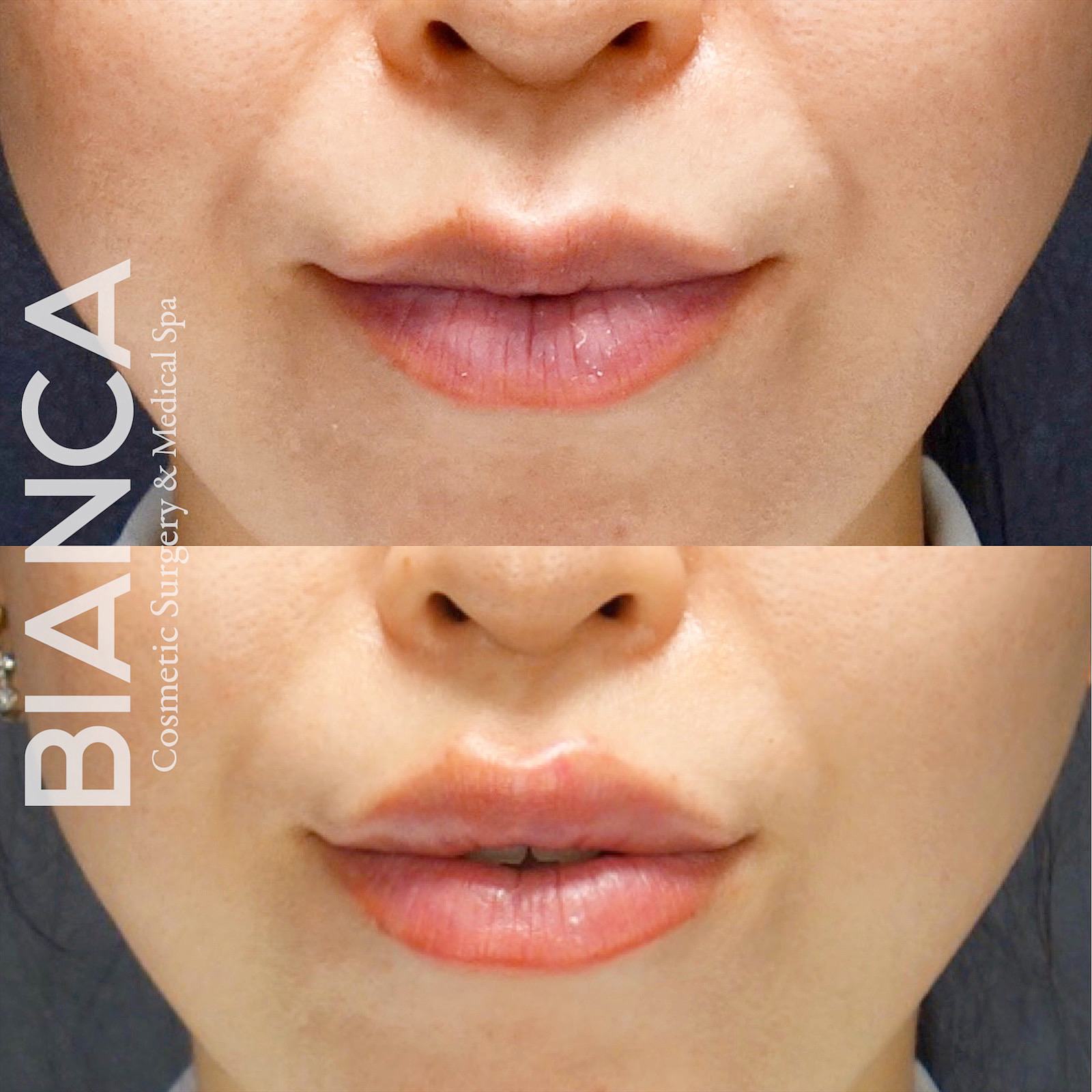 唇ヒアルロン酸 施術直後、施術1ヶ月
