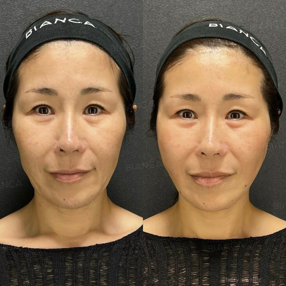 ヒアルロン酸注射(頬コケ+チークトップ)、BIANCA LIFT 6本、BIANCA LIFT W 2本、ベビーコラーゲン、ボトックス注射(眉上)