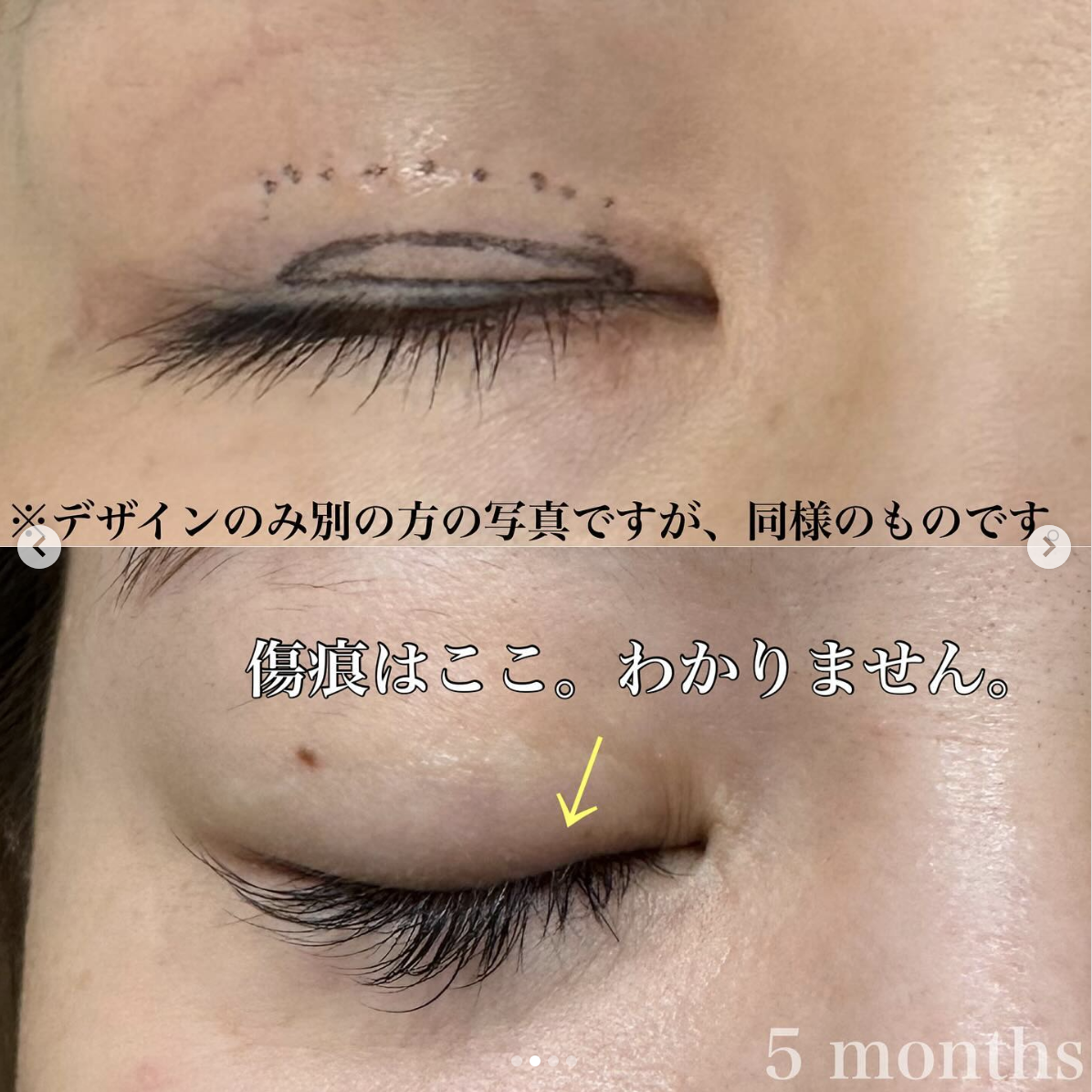 切開した跡は睫毛のすぐ近くになるため、最終的に傷跡はほとんど目立ちません。